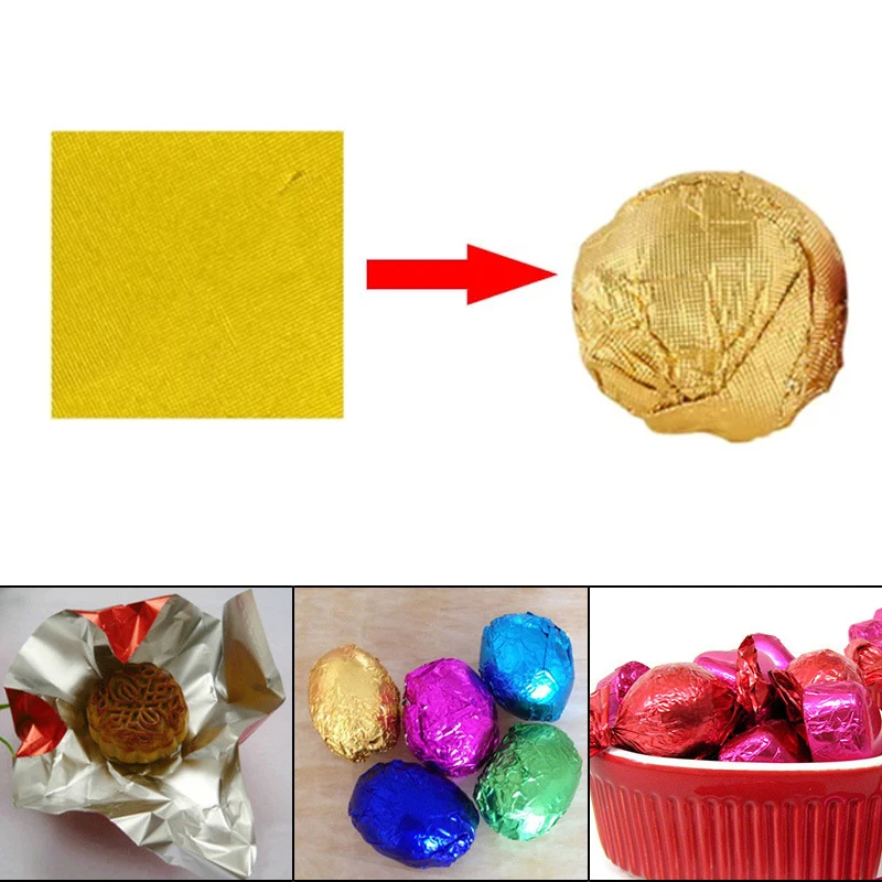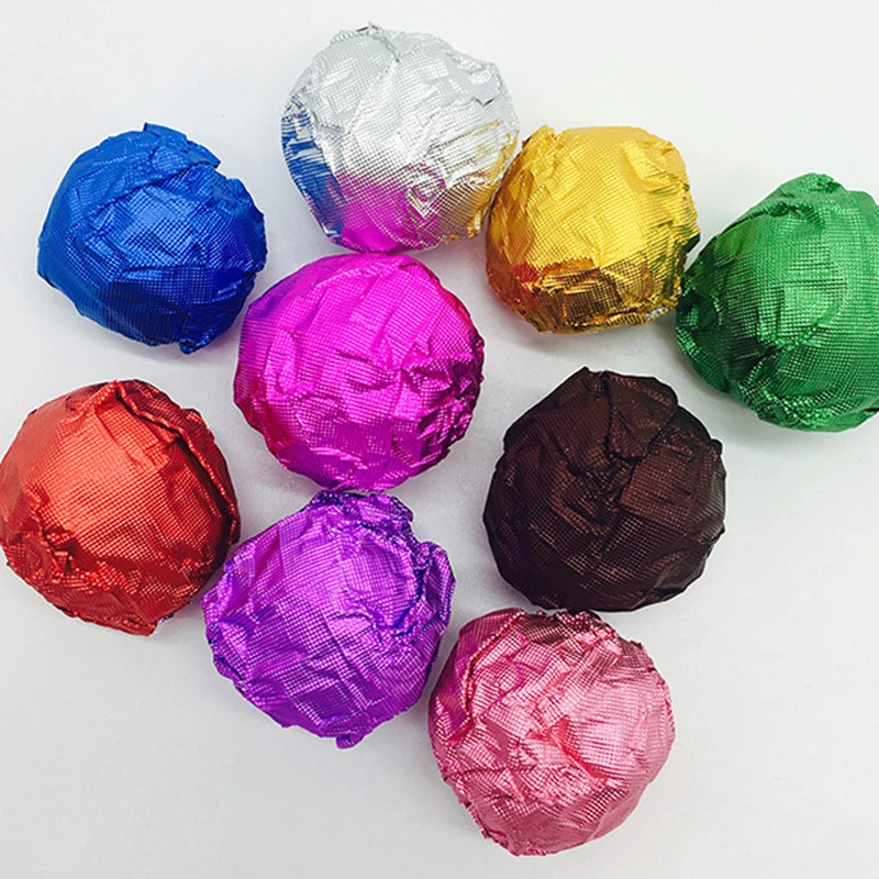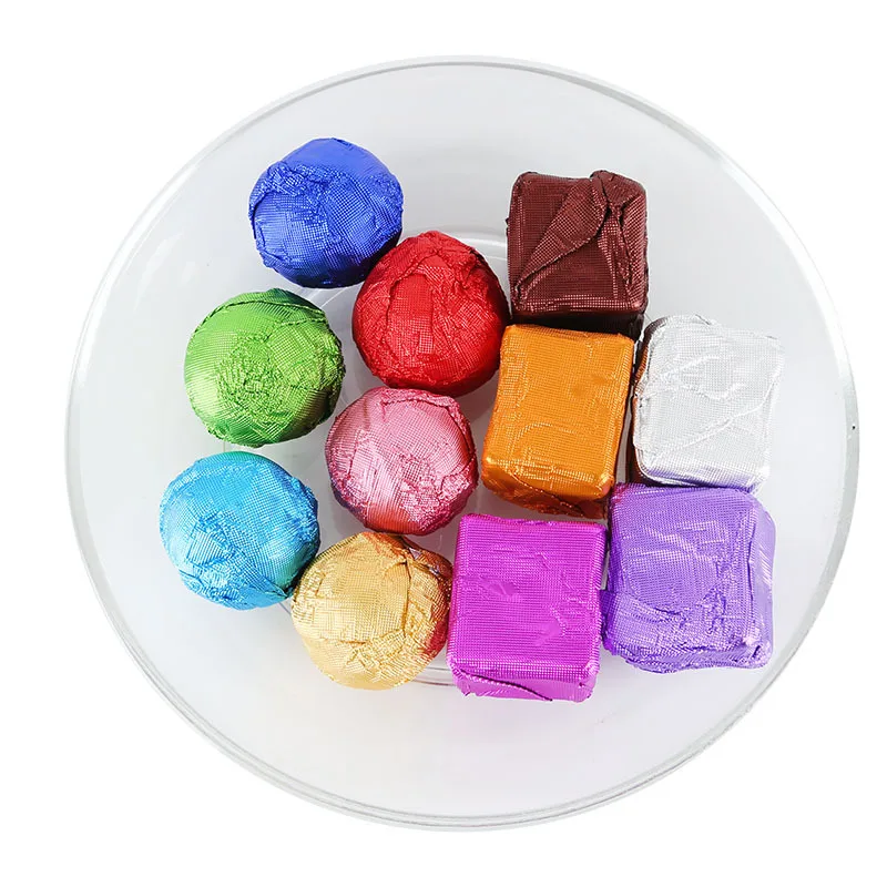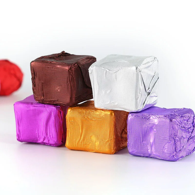 مئة قطعة 15 × 15 سم ورق تغليف الشوكولاتة الملون المنقوش ورق ألومنيوم حلوى البسكويت ورق التغليف لتزيين الهدايا للحفلات